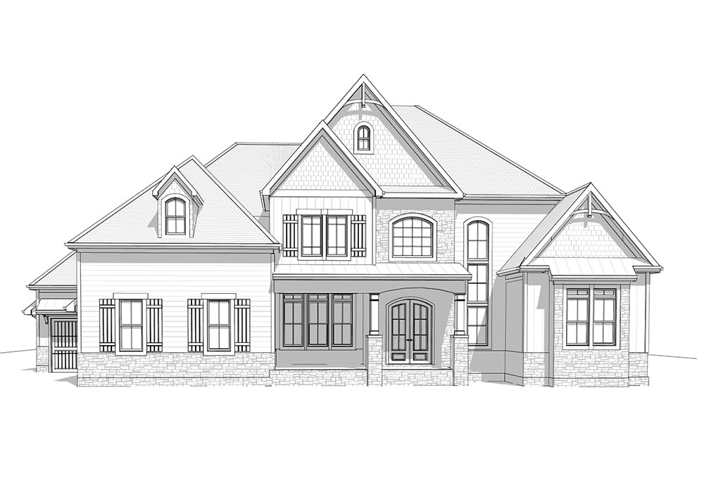 The Grace plan is a 3,836 sq. ft. home with four bedrooms and four bathrooms with a 2 car garage.